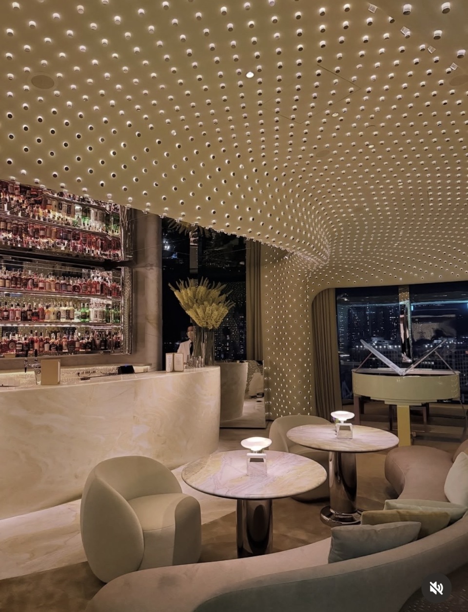 徐子淇选择在恒基兆业大厦接待萨巴伦卡,是因为这是自家的建筑物,重点是这个大厦才兴建起来不久,而且还已经成为了中环新的地标建筑。大厦内既有公共空间,也有艺术装置,大堂还陈列了杰夫昆斯的《气球天鹅》等世界艺术品。另外,这栋大厦徐子淇也有份参与设计,所以自大厦落成以来,徐子淇一直在推广,而且大小私人聚会都选址在此。此次招待萨巴伦卡,徐子淇特别安排在天台的私人会所进行,这个会所装潢精致,除了能看得到维港夜景外,室内的设计犹如繁星点点,氛围感极强,徐子淇与萨巴伦卡在此留下合照。